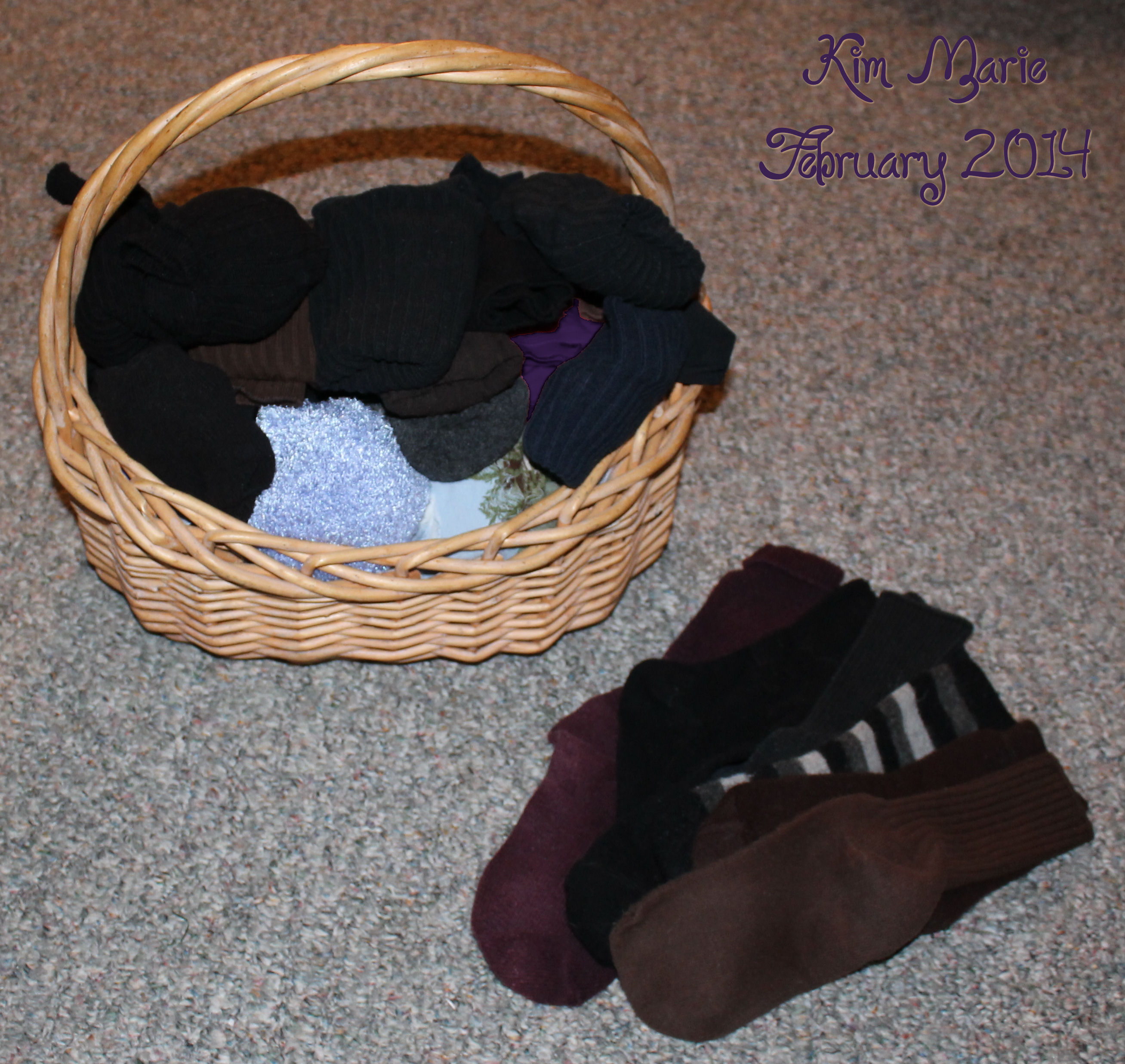 Image of rolled up socks in a basket with a row of individual, unmatched socks next to it.