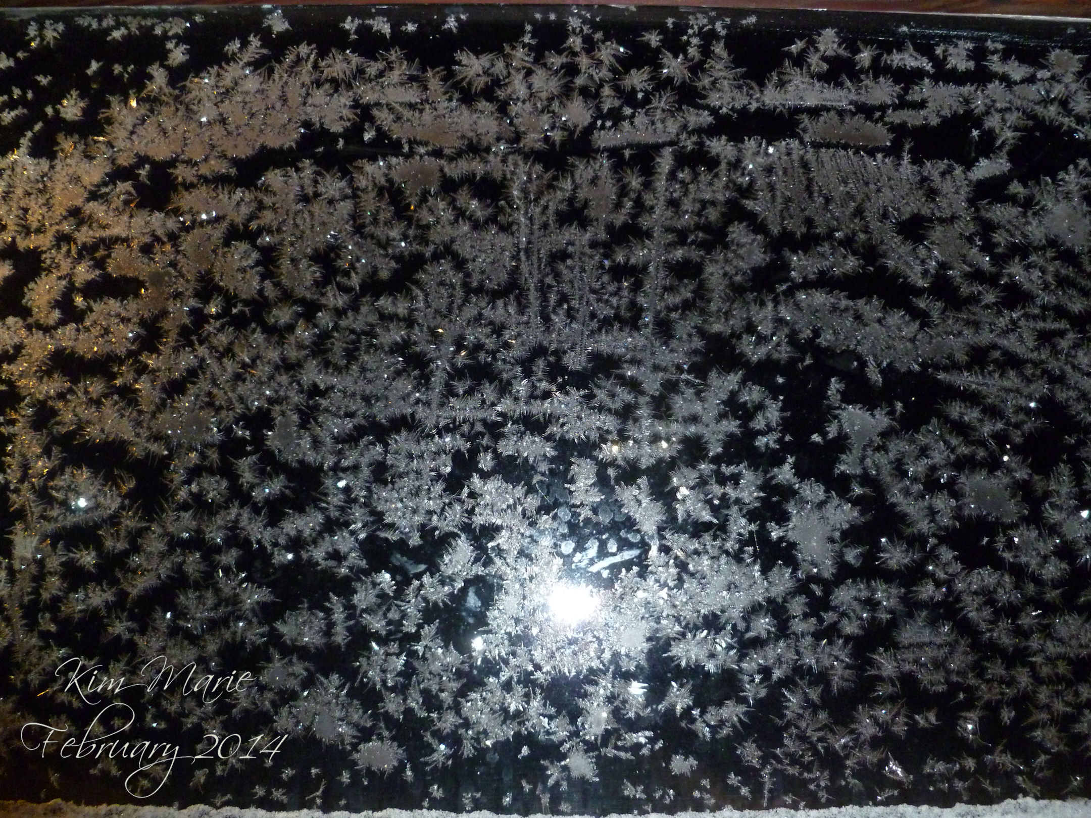 An image of February 2014 … fortunately, it’s not this bad yet to put ice on a window like this: