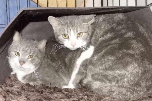 The second day Willow and Poppy moved into our home. Willow is on the bottom and Poppy is sitting on her.