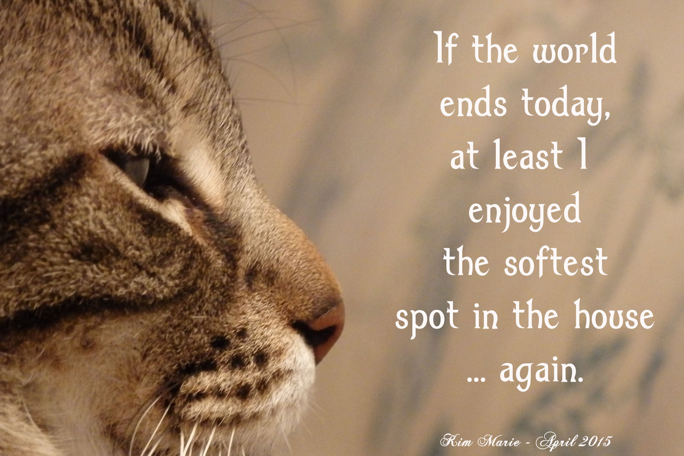 For today, I’d like to share that it is a blessing to live each day like you’re dying. I do my usual things each day, although sometimes a bit slower than usual. I spend time with my mom when she is around. I sit in the sun with my fellow felines in the afternoon when I feel like it. The only difference is that I push my way into a couple of things I used to feel like I shouldn’t do.