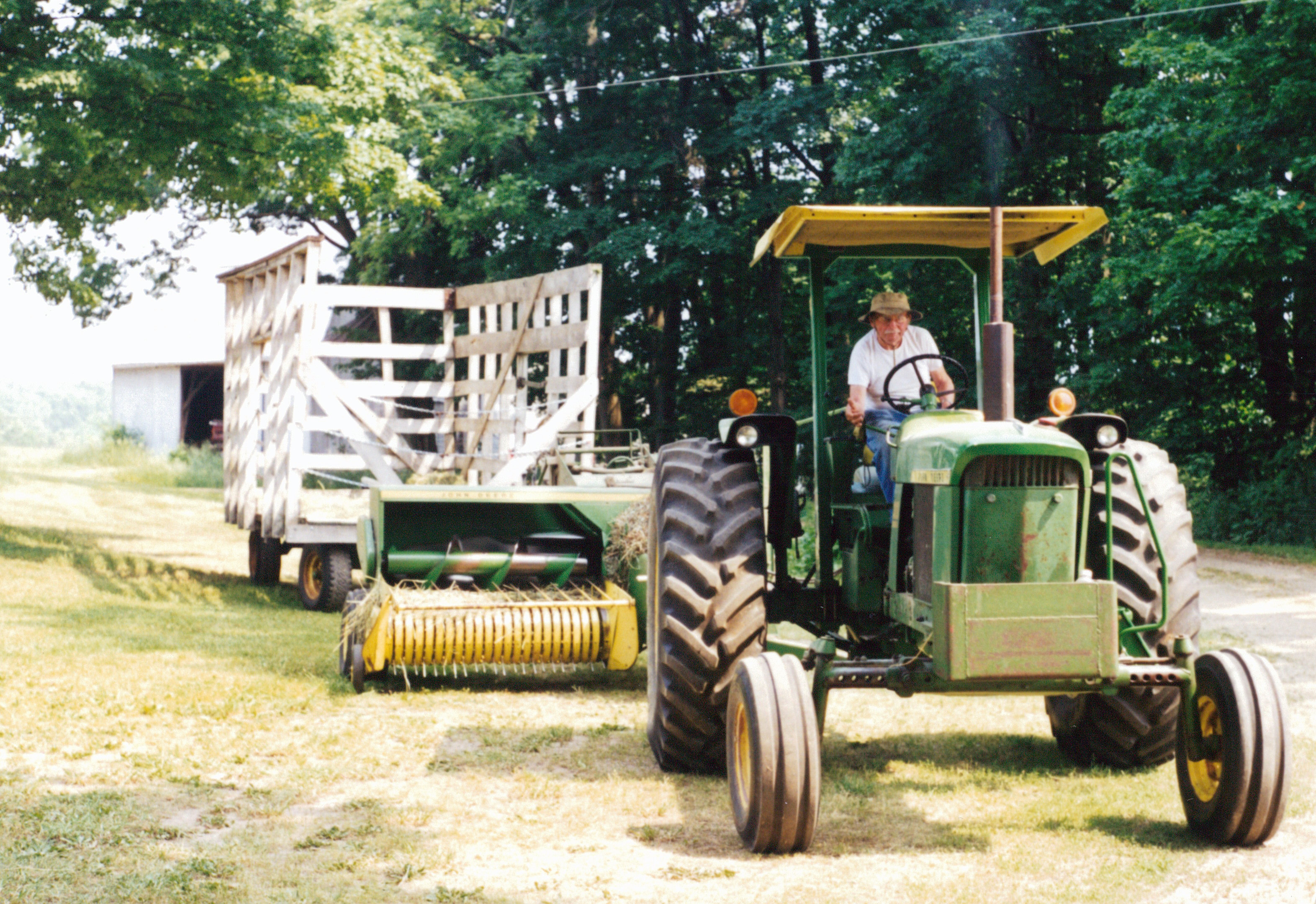 Dad using the tractor to bail hay. He passed in January 2014, and he had bailed hay the summer before.