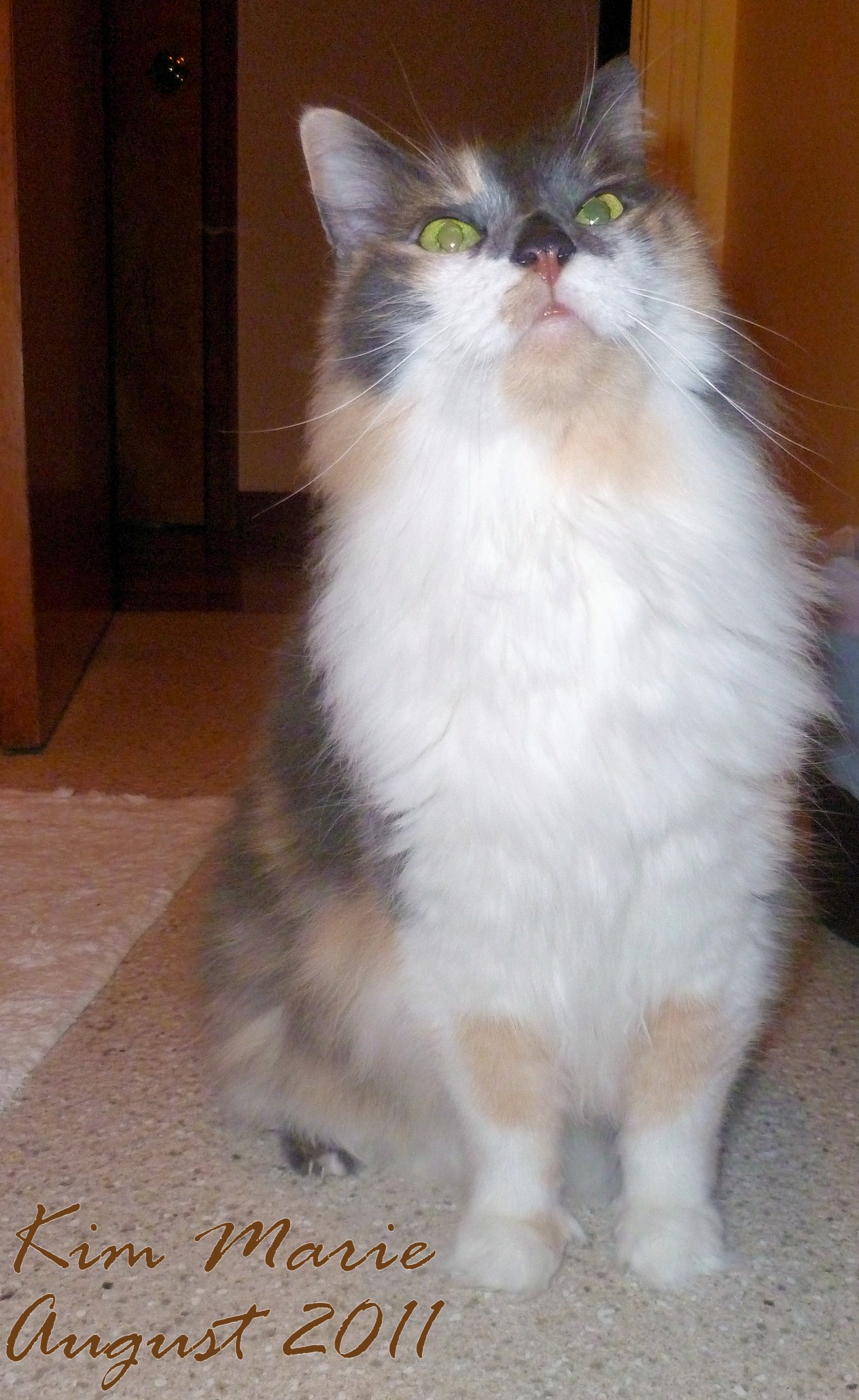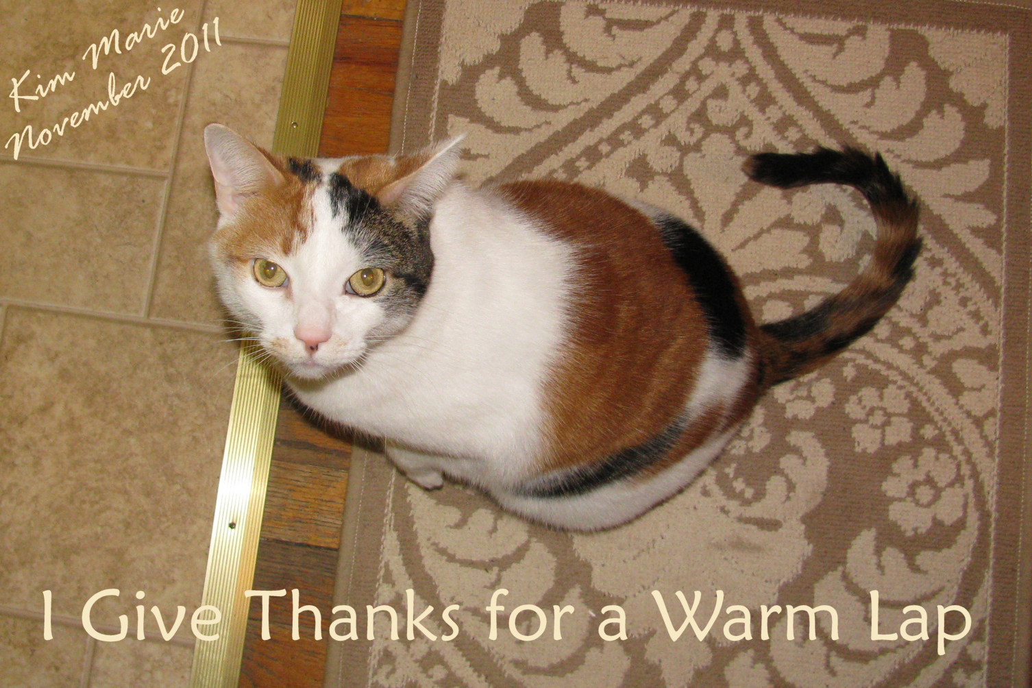 We give extra thanks for this wee one today. With the power out and my brother staying here adding a nervous dog who paces to the mix, she was very upset. We couldn’t find her today … until this evening. Since the house was near ripped to pieces hunting for her – inside and out – we don’t have a clue where she was hiding. We are celebrating the return of the electricity, but even more so the return of our sweet kitty!