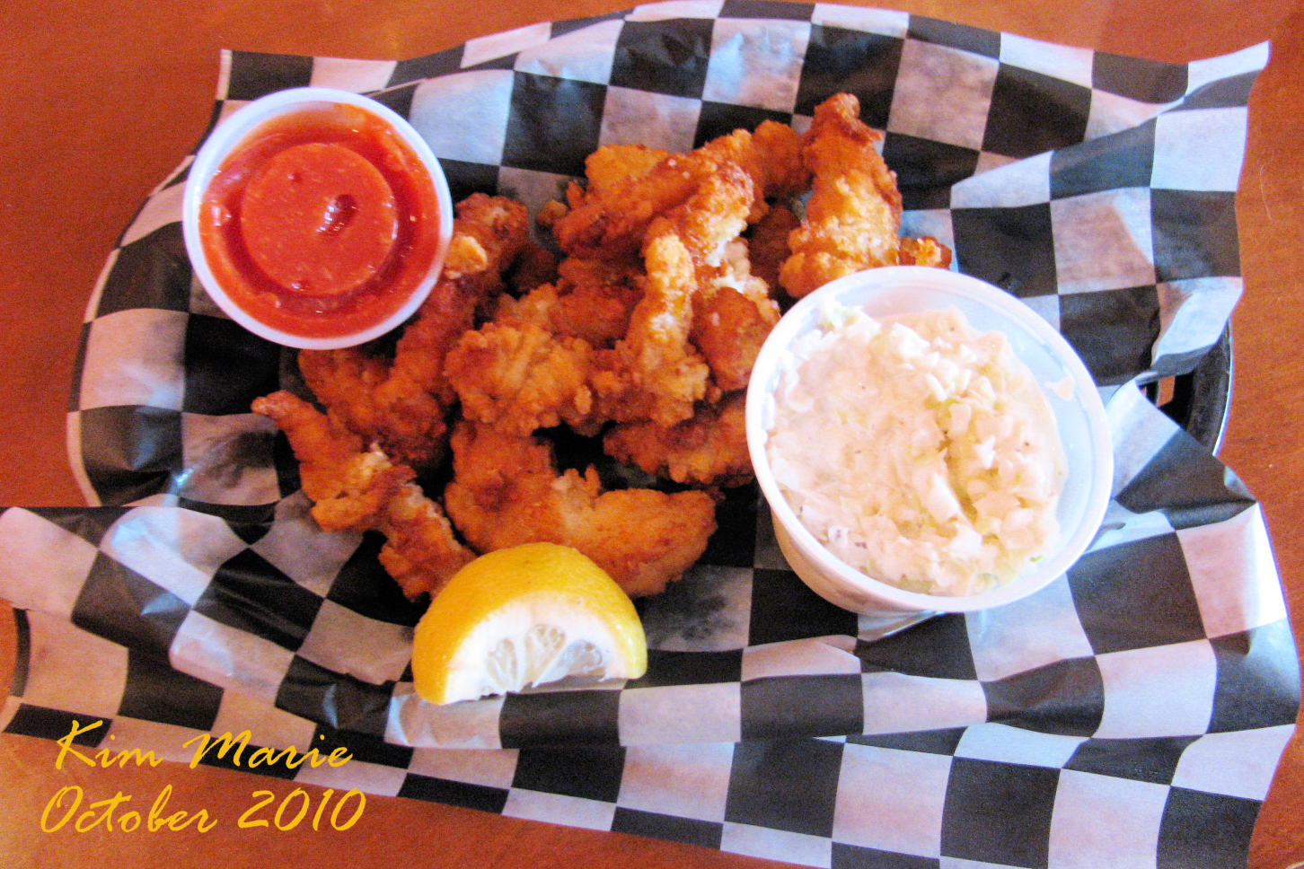 When I say huge, they were thick like a roll of Life Savers and about as long too. Oh my, they were fried up just right. Nice and crisp. Perfectly warm, not too hot. Even the cole slaw was tasty. I’d definitely go back.