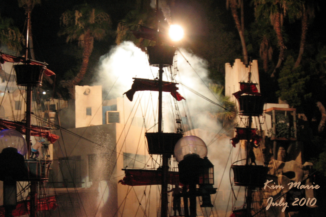 After reading Carole Nelson Douglas’ mystery series about the cat Midnight Louie (a fun series taking place in Las Vegas), I was very much looking forward to seeing the Pirate exhibit at Treasure Island. I was impressed by the pyrotechnics and the size of the boats, but I was saddened by the scanty outfits the crew wore. The only photos I brought home were those of the techy stuff. The scanty stuff is welcome to stay in Vegas … or even skip town.
