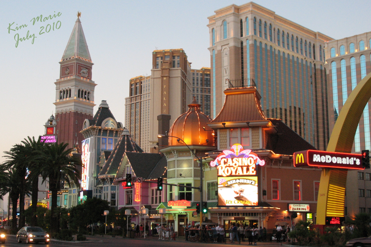 A friend and I on our free evenings in Las Vegas (days spent inside at a conference) enjoyed walking in and out of many casinos. We had no intentions to gamble, just to enjoy taking photos of each one and see the interior decorating wonders. I think I was a bit more interested in the outside of Casino Royale that the inside. I had high hopes of seeing a 007 figure. No such luck.