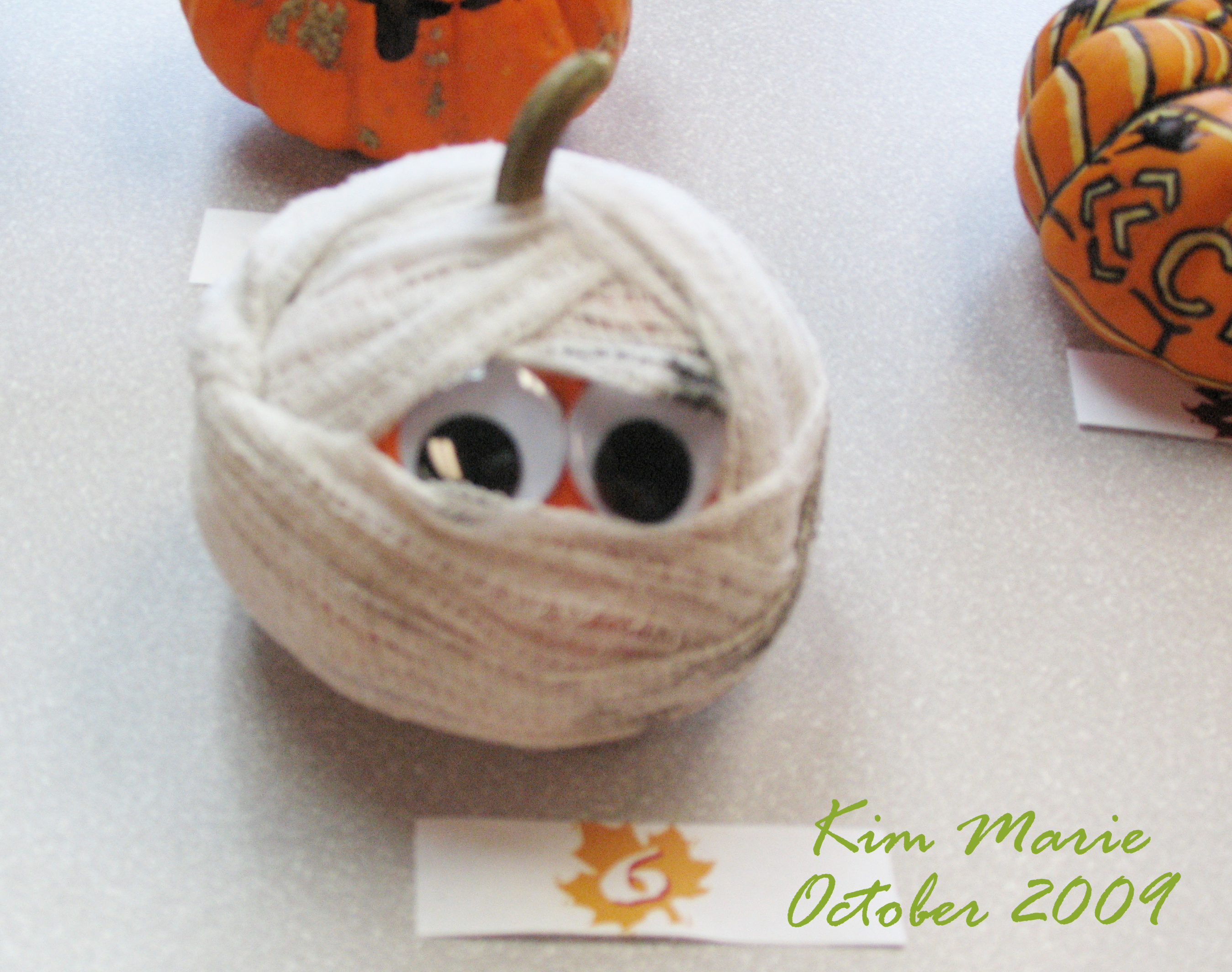 In the office I worked in back in 2008, we had mini-pumpkin decorating contests each Halloween. Thank goodness it wasn’t carving! I would not have done well, and I tend to do unintended damage with knives.