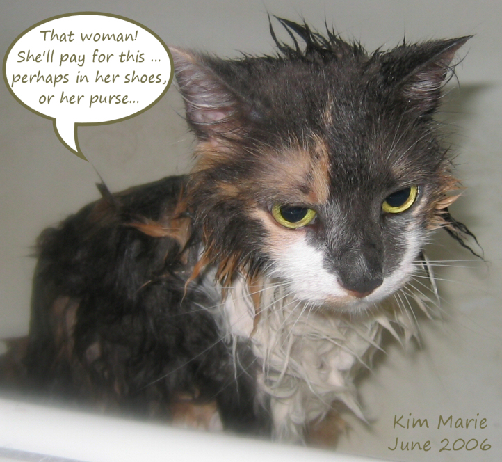 Although she much needed the bath, and she did feel much better when she was dry, she forgave me in only a couple of hours. Not many have forgiveness that works so quickly! But this photo was taken before the forgiveness occurred, as her face can only tell you for sure.